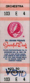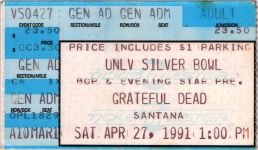 The first set of tickets I bought through Grateful Dead Ticket Service. Mediocre seats for two nights, and great seats for one - typical of GDTS. Aren't they pretty? Too bad the glitter didn't show up in the scan... |